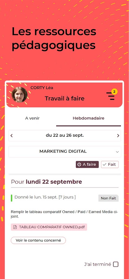 PRONOTE Campus (ранее HYPERPLANNING) позволяет студентам и преподавателям получать доступ к своим данным в режиме реального времени и в безопасной среде. Студенты всегда знают, как обстоят дела: изменения в аудитории, перенесенные занятия, задания, отчеты об оценках, подтверждение посещаемости, обоснование пропусков или опозданий, а также онлайн-подписание договоров о стажировке. Преподаватели имеют доступ ко всем необходимым функциям: расписания, предстоящие занятия, свободные аудитории, отслеживание договоров о стажировке и табели посещаемости. Они заполняют табели посещаемости непосредственно в мобильном приложении.
