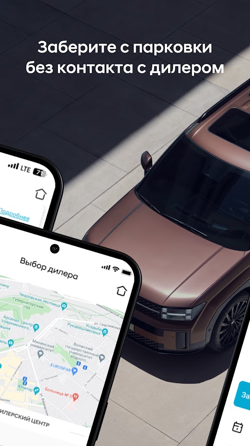 Вам не нужно приезжать в наш офис. Оформляйте документы прямо в мобильном приложении, а потом забирайте автомобиль с парковки выбранного вами ДЦ. Вы сможете осмотреть и принять его с помощью приложения.