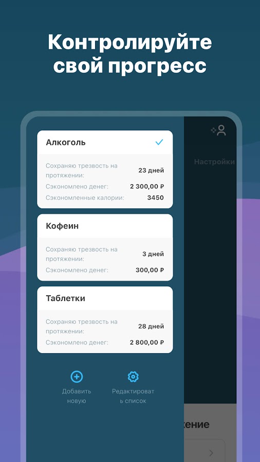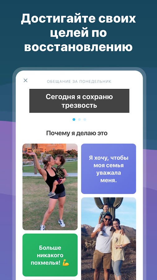 Добавляйте причины и фотографии, которые помогут вам вспомнить, почему вы хотите бросить свою зависимость, оставаться трезвым и выработать новые привычки. Получайте мотивацию и наслаждайтесь своим выздоровлением.
