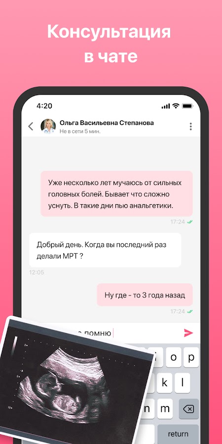 — легко связаться с лечащим врачом через текстовый чат, либо через видеосвязь