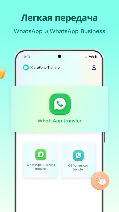Разблокируйте беспрепятственную передачу WhatsApp с помощью iCareFone Transfer на iPhone! Переносите свои сообщения, контакты, фото, видео, аудио, файлы, эмодзи и стикеры WhatsApp между Android и iPhone всего одним кликом. Без ПК — наслаждайтесь плавной и простой миграцией данных.