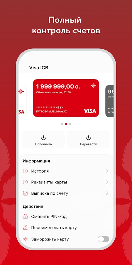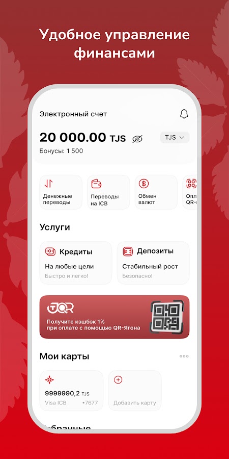 Приложение позволяет легко управлять вашими банковскими счетами и картами в одном месте.