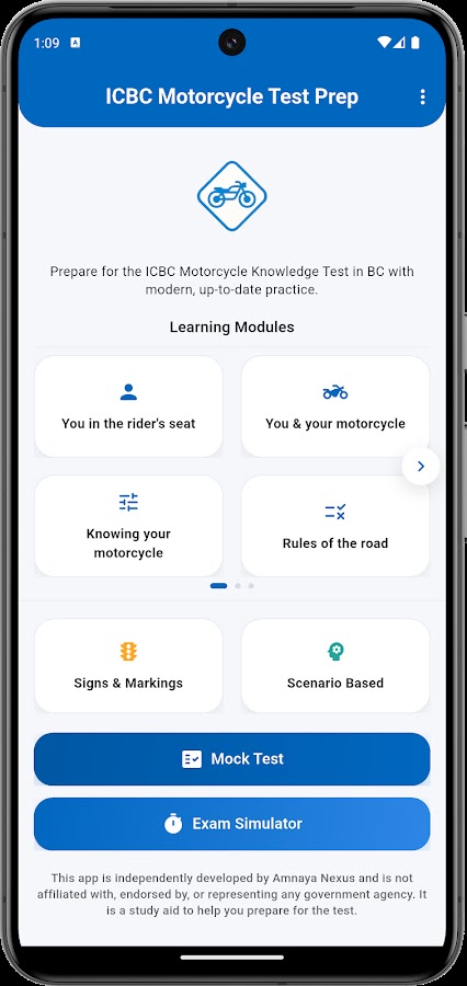 Подготовьтесь к экзамену на получение водительских прав на мотоцикл в Британской Колумбии с помощью приложения ICBC Moto Prep! Независимо от того, являетесь ли вы новичком или хотите освежить свои знания, это удобное приложение-викторина станет вашим незаменимым инструментом для успешной сдачи экзамена.