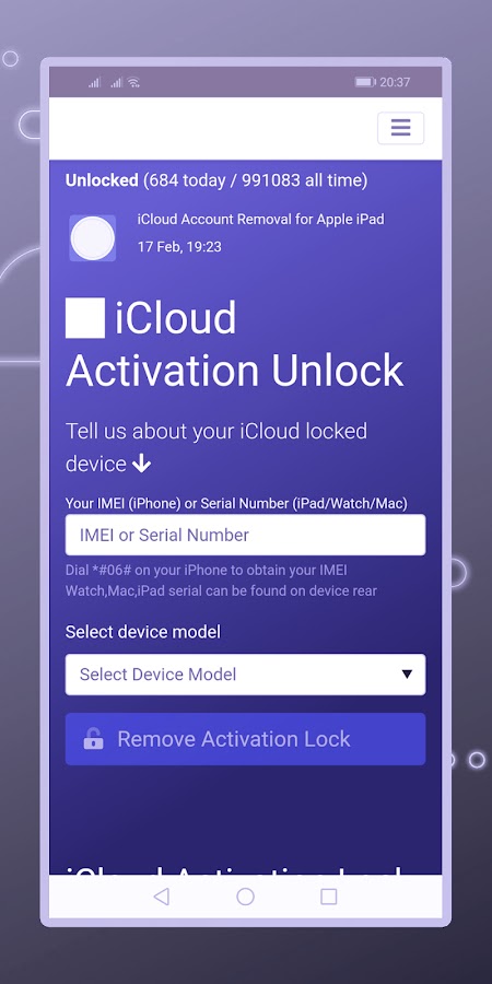 Скачайте приложение ICloud and Phone Unlock для Android бесплатно - последняя версия (1.13) уже доступна для установки на ваш телефон или планшет.