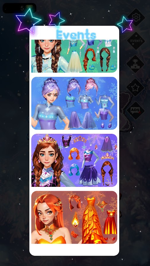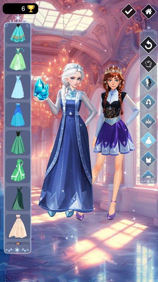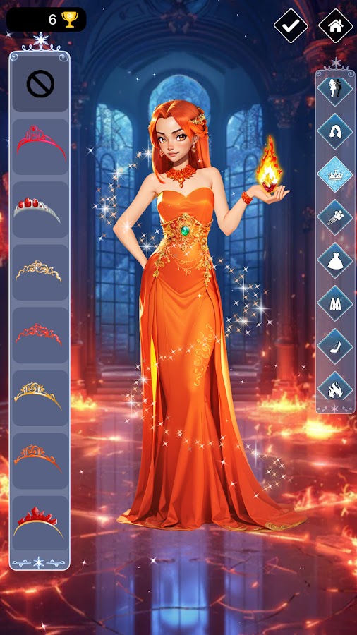 Ее наряды излучают уверенную, творческую и яркую энергию, платья сверкают, в них отражаются снежинки. Она все еще принцесса, но рано или поздно она станет королевой, значит, ей нужно подготовить платье для коронации и выбрать наряд. Она может заморозить одним взглядом или прикосновением. У нее холодное сердце и все наряды пропитаны холодом это настоящее снежное королевство в твоем телефоне. Она неприкосновенна для других, но только в этой игре одевалке ты сможешь сделать из нее не только королеву холода, но и огненную королеву. Тебе решать в её сердце холод или огонь?