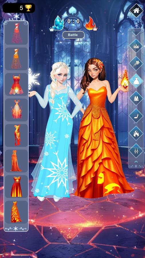 В идеальном мире мы все были бы принцессами каждый день! Добро пожаловать в мир игр для девочек, где можно примерить на себя любой наряд и стать настоящей принцессой. В нашей игре тебе предстоит пройти нашу одевалку двух сестер и выбрать кто же победит огонь или холод? Возможно между сестрами наступит дружба? Тебе решать!