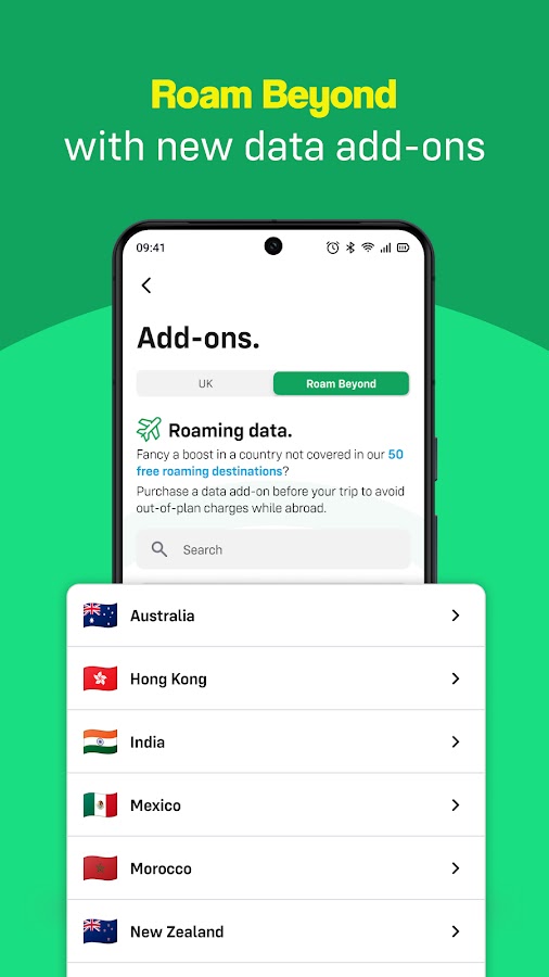 • Роуминг без ограничений — быстро и легко приобретайте услуги роуминга для других направлений по всему миру прямо в приложении.