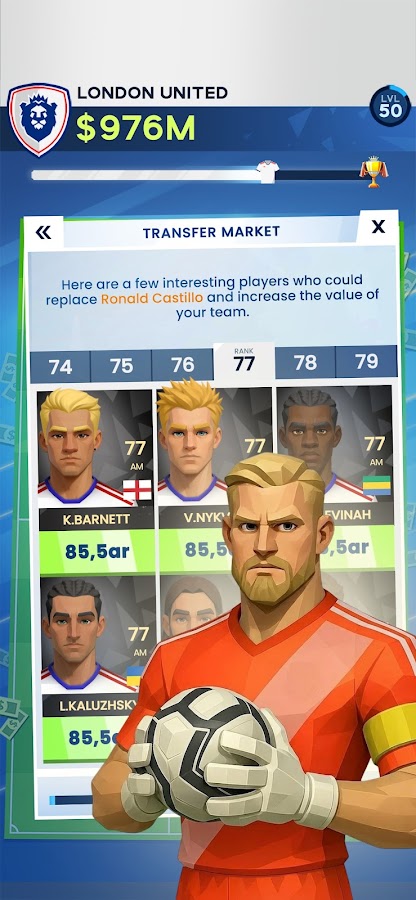 ▪ НАБИРАЙТЕ лучших игроков на трансферном рынке, чтобы создать команду мечты (с нападающими, полузащитниками, защитниками…)