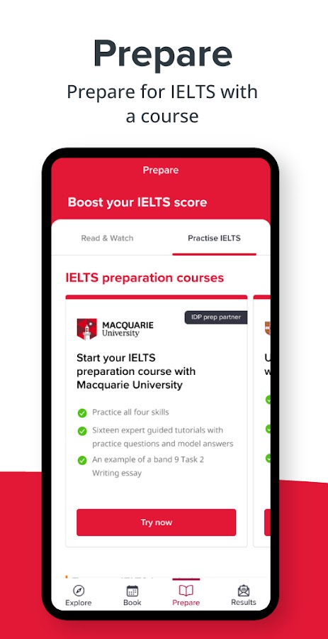 Идеальное приложение для подготовки, бронирования и получения результатов IELTS — независимо от того, начинаете ли вы свой путь или готовы сдать тест, в IELTS от IDP есть все, что вам нужно для успеха.