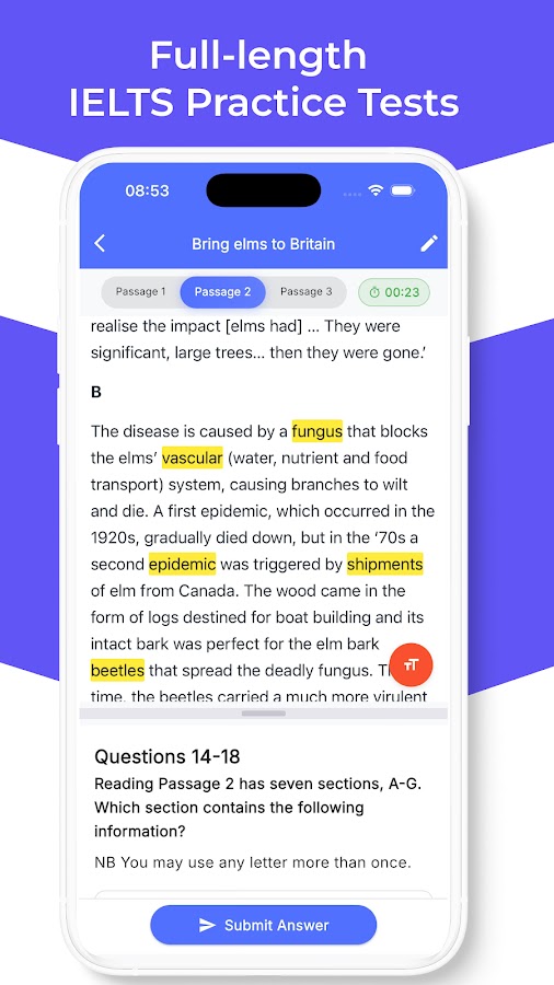 Независимо от того, стремитесь ли вы к 6,5 баллам или к идеальному результату Band 9, IELTS Practice Band 9 — ваш универсальный помощник в подготовке.