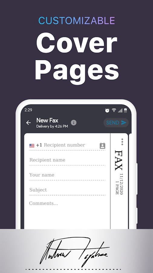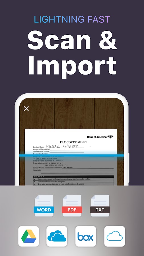 — Подписывайте документы, заполняйте формы, сканируйте документы и отправляйте факсы прямо со своего телефона, устраняя необходимость в традиционных факсимильных аппаратах.