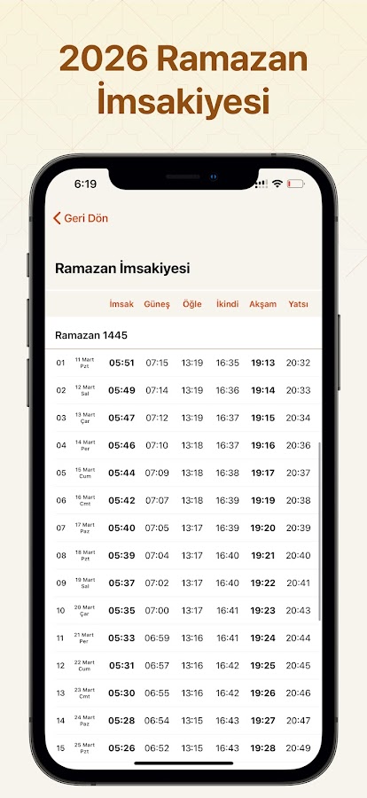 Вы можете следить за временем сахура и ифтара в 209 странах и более чем 8000 городах, таких как Стамбул, Анкара, Конья, Бурса, Баку и Вена.