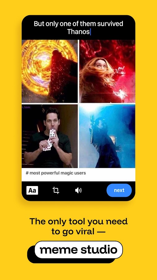 Бесконечный контент: независимо от вашего настроения, интересов, настроения или дня — найдётся мем, который всё это охарактеризует, и ещё сотня, чтобы повеселиться. С тысячами шуток, забавных видео и картинок у вас под рукой вы всегда найдете что-то, что заставит вас рассмеяться. Ознакомьтесь с нашей обширной коллекцией эксклюзивных мемов и уморительных шуток, популярных в TikTok, Reddit и Rednote. Кроме того, с нашим приложением для создания видеомемов вы можете создавать свои собственные!