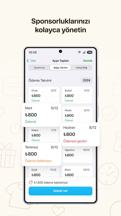 • Просматривать историю своих пожертвований в любое время.
