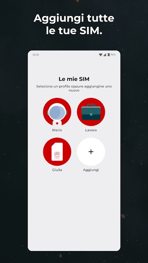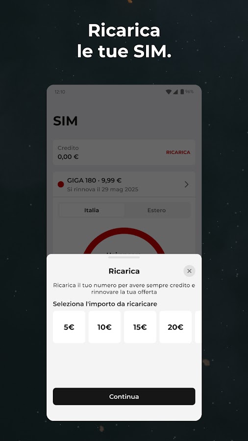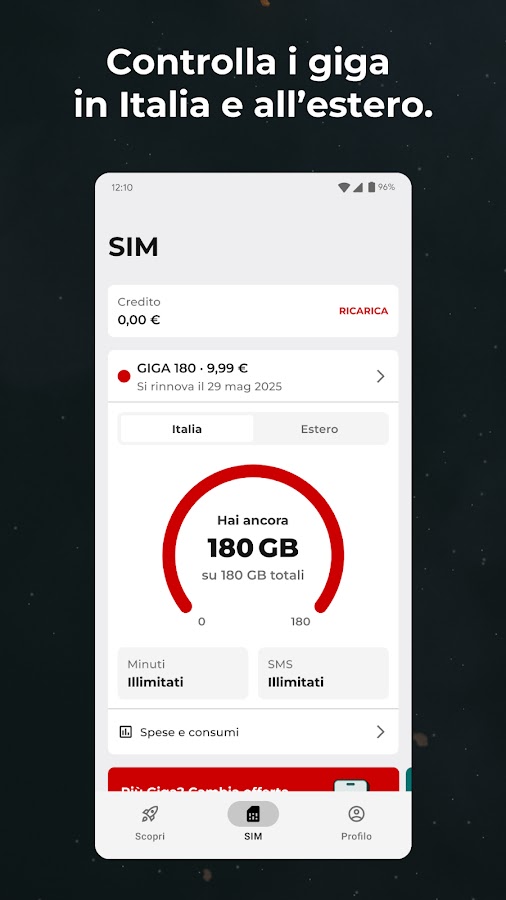 • Отслеживать использование данных в Италии и за рубежом: проверять доступный объем данных и баланс для всех ваших SIM-карт.