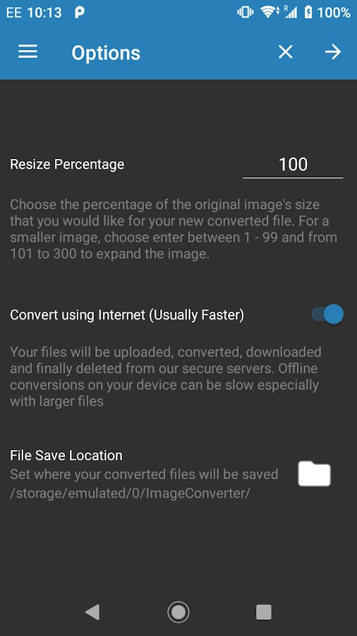 Для выполнения большинства преобразований требуется подключение к Интернету. Для преобразования большинства форматов в JPEG и PNG не требуется Интернет.
