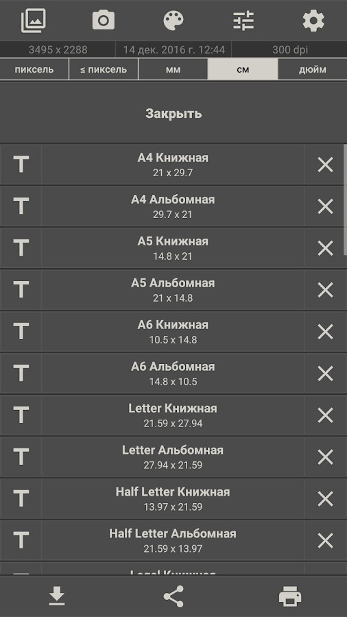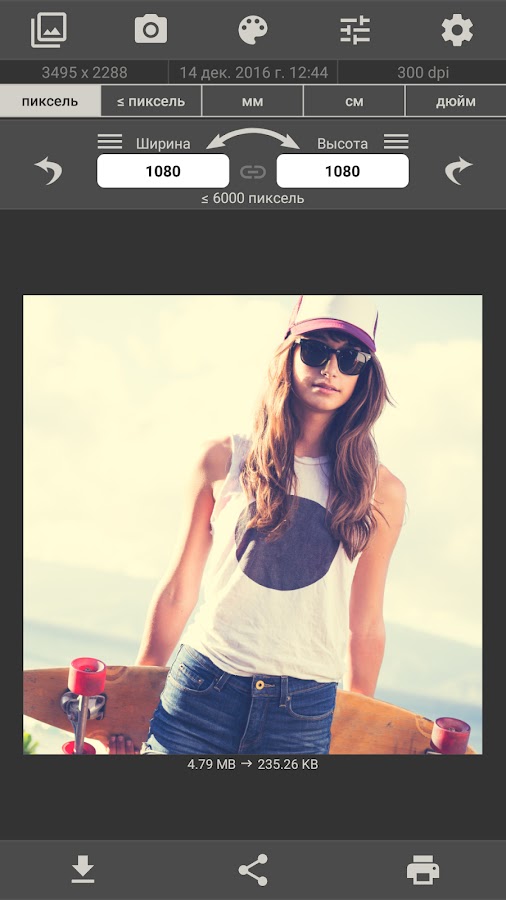 Приложение «Размер изображения» дает вам возможность сохранить, отправлять по электронной почте, печатать или делиться конечным изображением.