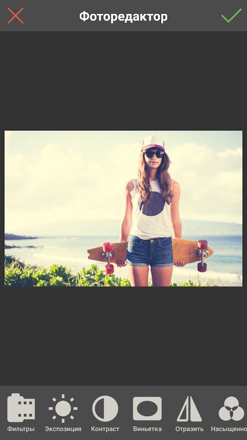 Добавлен редактор фотографий. (Фильтры, текст, наклейка и т. Д.)