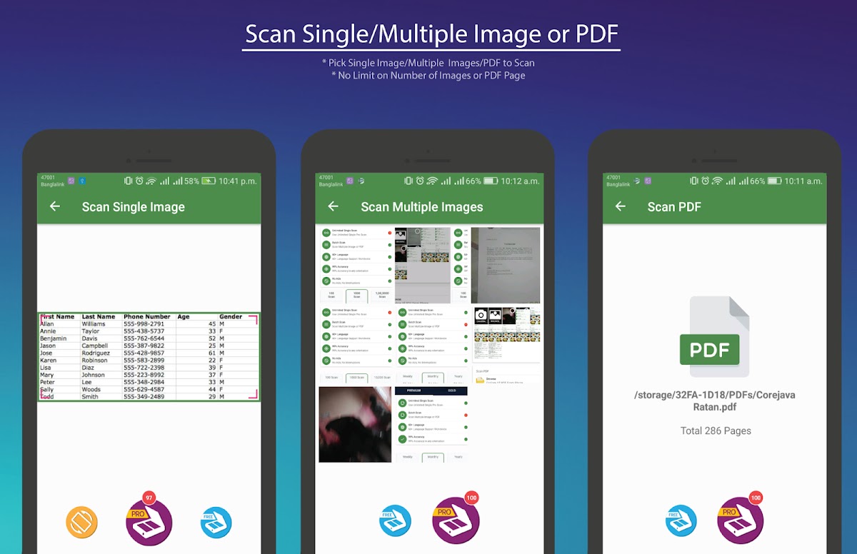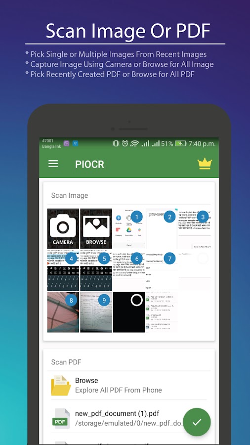 Самое точное приложение для сканирования OCR, доступное в настоящее время на рынке и поддерживающее более 30 языков мира. Сканирует как несколько изображений и PDF-файлов и сохраняет как один / несколько текстовых или PDF-файлов.