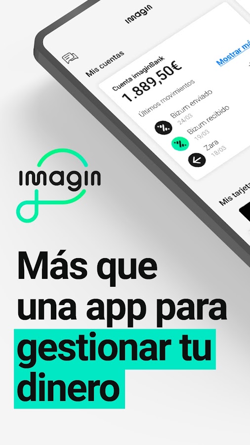 Скачайте приложение imagin, выберите цифровой банк, который заботится о планете, и наслаждайтесь скидками. Контролируйте свои финансы, делитесь расходами с друзьями, используйте карты, совершайте переводы и пользуйтесь Bizum.