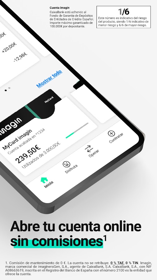 Станьте клиентом imaginBank и получите 100% мобильный текущий счет, карты без комиссий и условий, экономьте деньги, контролируйте свои расходы, снимайте наличные бесплатно в банкоматах CaixaBank и отправляйте и получайте деньги через Bizum Transfer.Присоединяйтесь к imagin, онлайн-банку для управления вашими финансами.