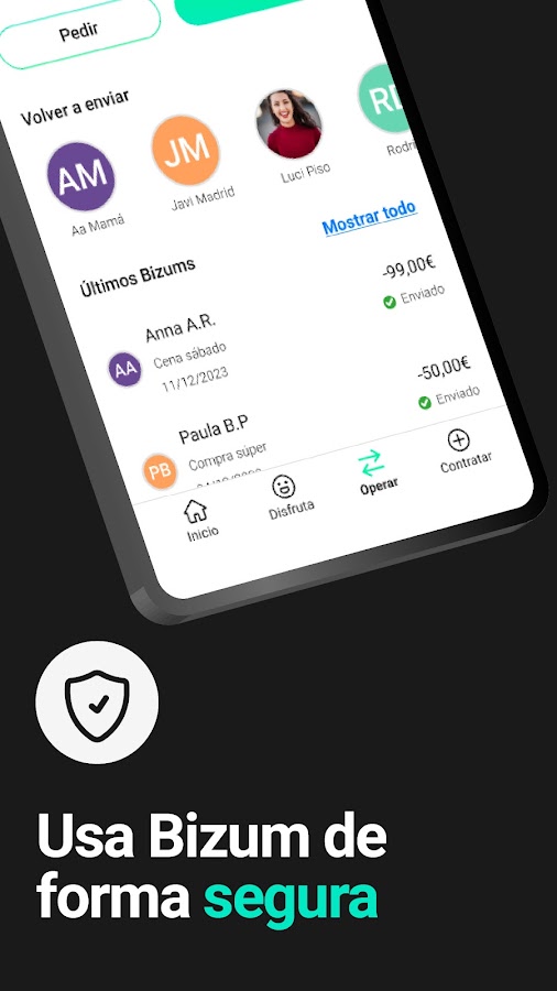 ✅ Мгновенно отправляйте и получайте деньги с помощью Bizum и совершайте бесплатные переводы без комиссий.