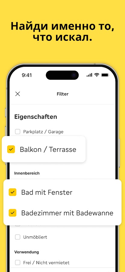 Забудь о бесконечном поиске новой квартиры! С immowelt ты можешь быстро найти идеальную квартиру, комнату или квартиру по обмену. Найти квартиру никогда не было так просто, как с нашими умными фильтрами. Используй поиск на карте, чтобы оценить, насколько хорошо местоположение квартиры подходит твоему образу жизни – так ты точно найдешь то, что искал!