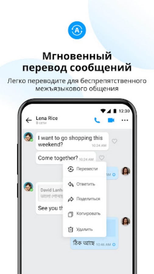 ■ Мгновенный перевод сообщений. Вы можете с легкостью переводить сообщения для беспрепятственного общения на разных языках. imo предоставляет вам удобный мгновенный перевод текстовых сообщений, подобно Telegram. Данная функция позволяет оставаться на связи по всему миру, как в случае с WhatsApp и BOTIM.