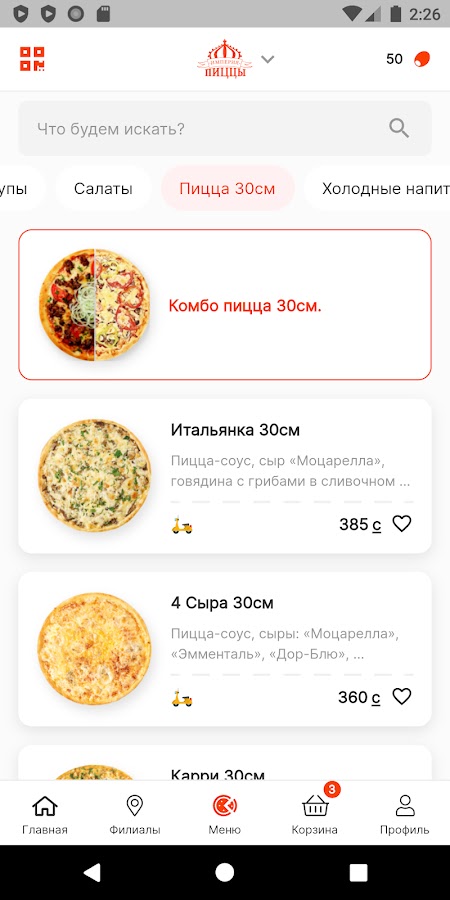 В нашем меню аппетитная пицца, роллы, широкий выбор закусок и десертов, супы, свежие салаты, напитки на любой вкус.