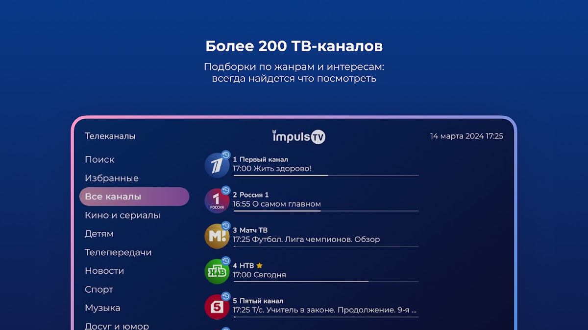 Impuls TV — сервис для просмотра интерактивного ТВ, кино и сериалов на вашем устройстве.
