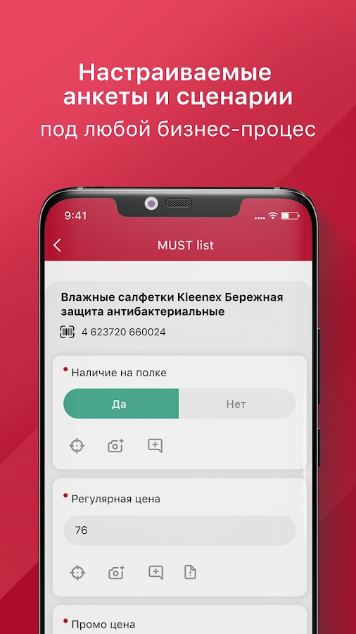 Приложение поможет прозрачно контролировать ключевые параметры и стандарты, обеспечит эффективность полевой команды аудиторов и супервайзеров, работы торговых точек, предоставит менеджменту компании своевременную аналитику и эффективные инструменты контроля и развития компании.