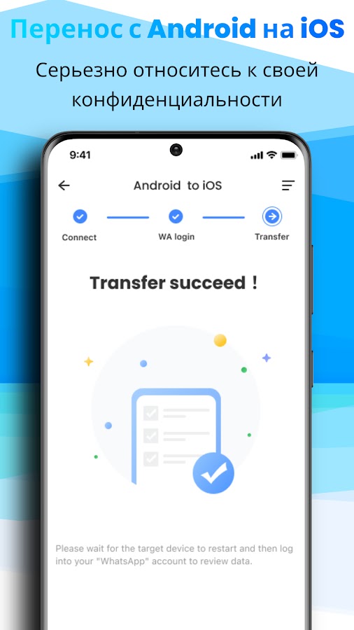 🔄 Двусторонняя передача: быстрая передача данных приложения Chat и бизнес-чата с Android на iPhone.