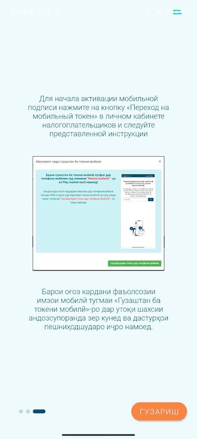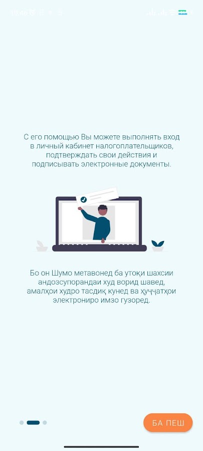 Приложение обеспечивает использование мобильной цифровой подписи в рамках работы с электронными сервисами Налогового комитета при Правительстве Республики Таджикистан и служит инструментом аутентификация пользователей. В приложение встроена инструкция по подключению мобильной подписи. Интуитивно понятный пользовательский интерфейс обеспечит комфортное использование приложения