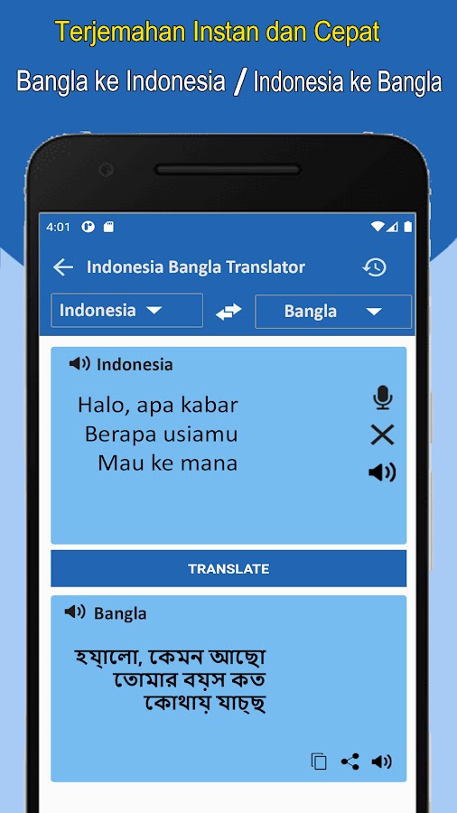 ভাষা রূপান্তর এবং অনুবাদের জন্য ইন্দোনেশিয়া বাংলা অনুবাদটি এত দুর্দান্ত। ইন্দোনেশিয়া থেকে বাংলাদেশ অনুবাদ হ’ল অনুবাদক অ্যাপটিতে ব্যবহৃত সবচেয়ে উন্নত প্রযুক্তি সঠিকভাবে কাজ করে।