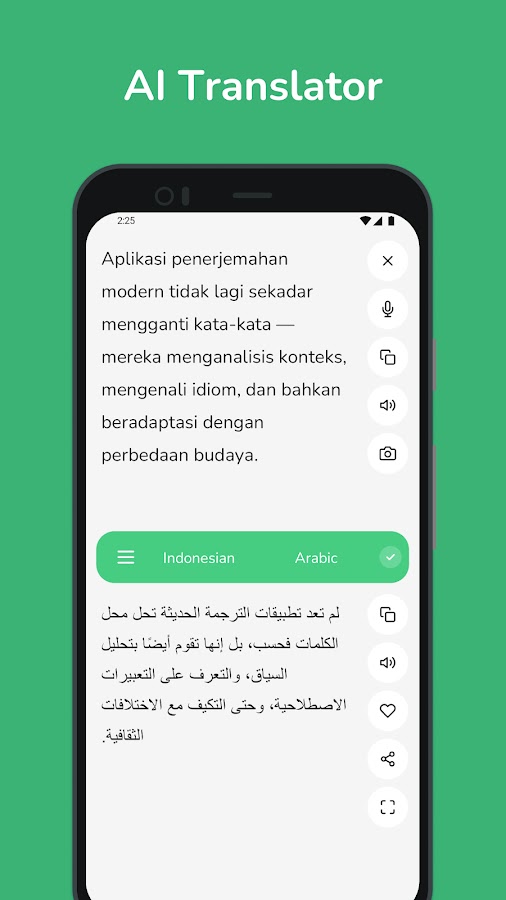 • Мгновенный перевод: получайте быстрые и точные переводы с индонезийского на арабский и наоборот, идеально подходящие для повседневного использования.