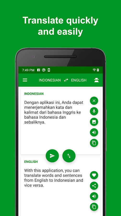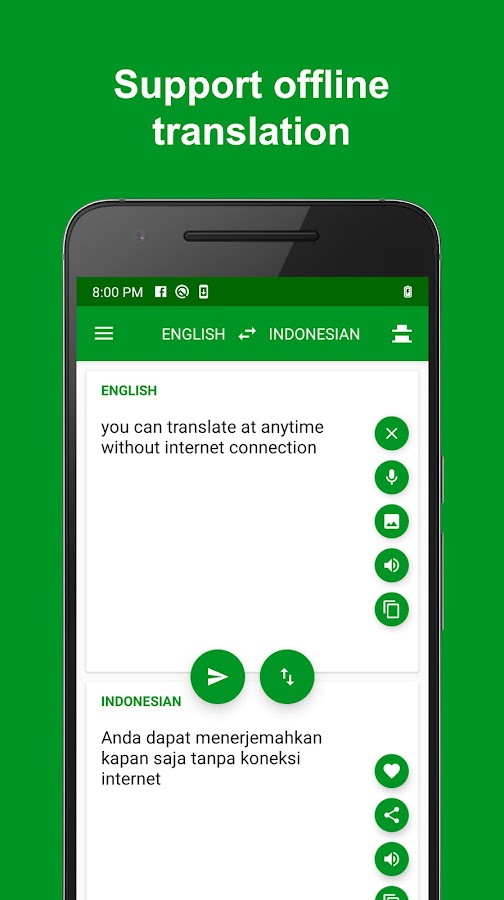Индонезийско-английский переводчик — это приложение, которое поможет вам найти словарь и перевести слова и предложения с индонезийского на английский, а также перевести с английского на индонезийский. Этот переводчик бесплатный, и вы можете переводить слова или предложения быстро, удобно и легко.