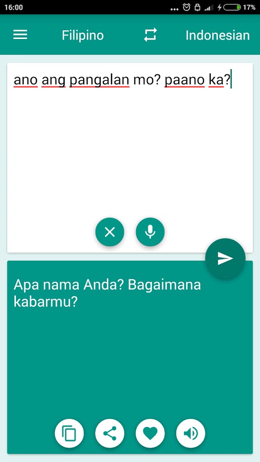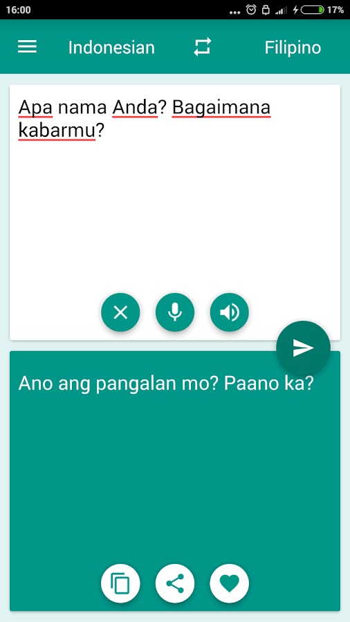 Это бесплатный переводчик может быстро перевести из Индонезии в филиппинских и филиппинских в Индонезии (Индонезия-филиппинки Penterjemah, Переводчик Филиппинский-индонезийский) слова, а также полные предложения. Мгновенный перевод и полный действия из слов.