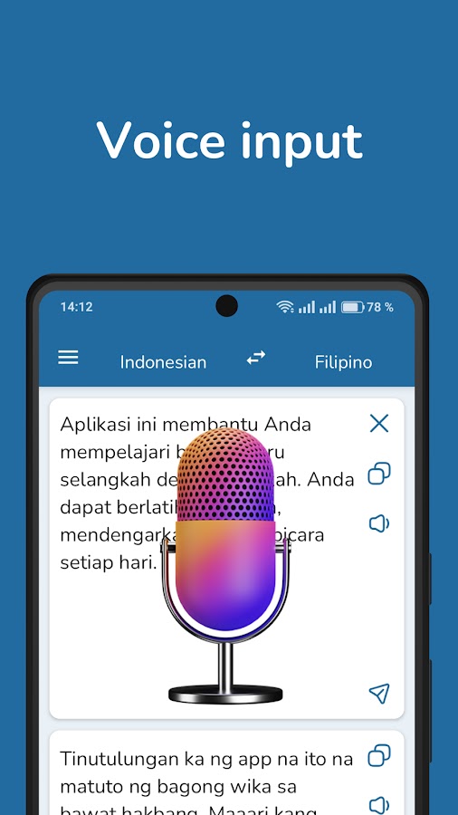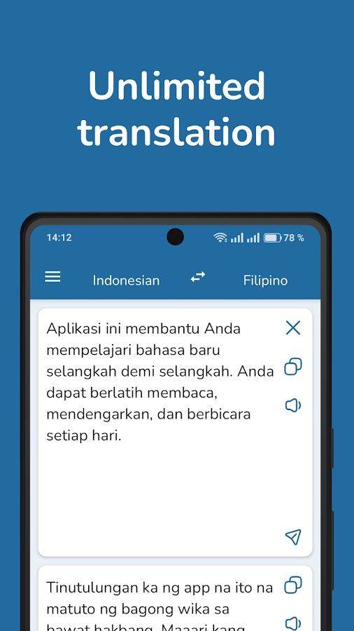 Независимо от того, изучаете ли вы филиппинский или индонезийский язык, путешествуете за границу или работаете на международном уровне, это приложение-переводчик станет вашим основным языковым инструментом.