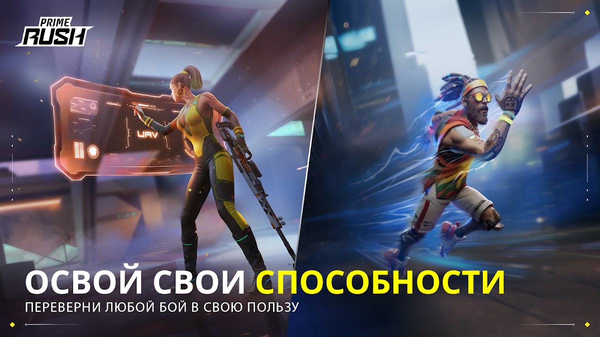 Объединяйся с друзьями, создавай отряд и доминируй на поле боя. Играй за захватывающих героев Prime Rush: Rafael, Juliana и Taj — каждый со своим стилем и энергией. Координируй действия, прикрывай союзников и используй командную стратегию, чтобы одолеть противников.