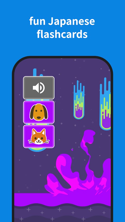 Учите сотни японских слов для начинающих через увлекательный игровой процесс с космической тематикой! Наслаждайтесь весёлым изучением с помощью карточек, которое делает запоминание простым и лёгким.