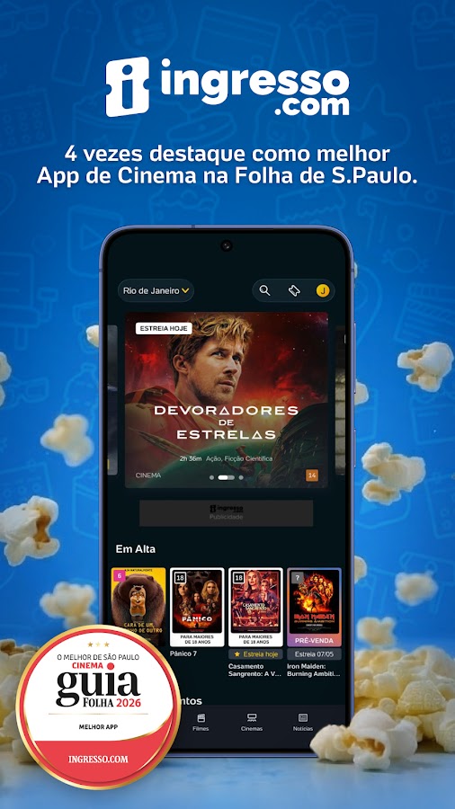 Скачайте приложение Ingresso.com — Filmes + Cinema для Android бесплатно - последняя версия (5.3.1) уже доступна для установки на ваш телефон или планшет.