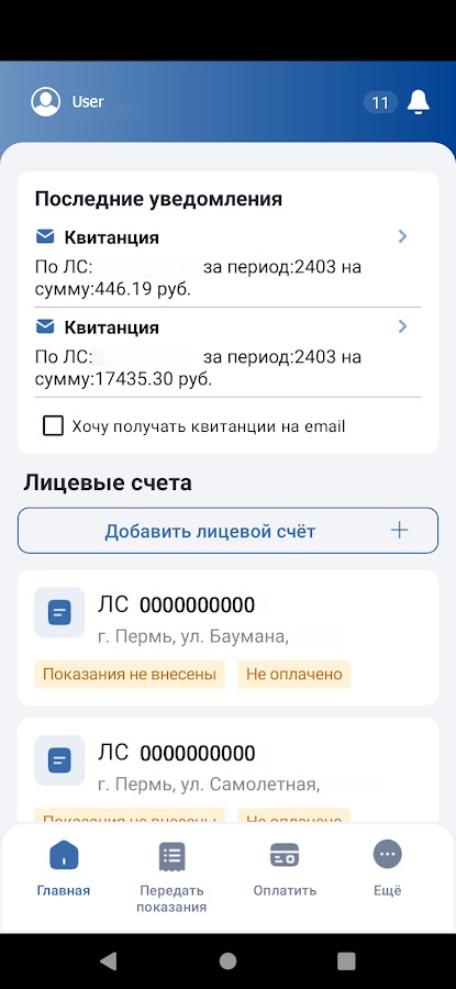 — знакомиться с начислениями и изменениями по подключенным лицевым счетам