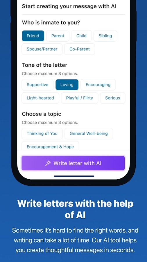 Напомните своему заключенному другу или близкому человеку, что о нем не забывают, отправив ему фотографии, когда он находится в тюрьме, исправительном учреждении, БОП или тюрьме штата. Заказать фотографии в нашем приложении легко и занимает всего несколько минут.
