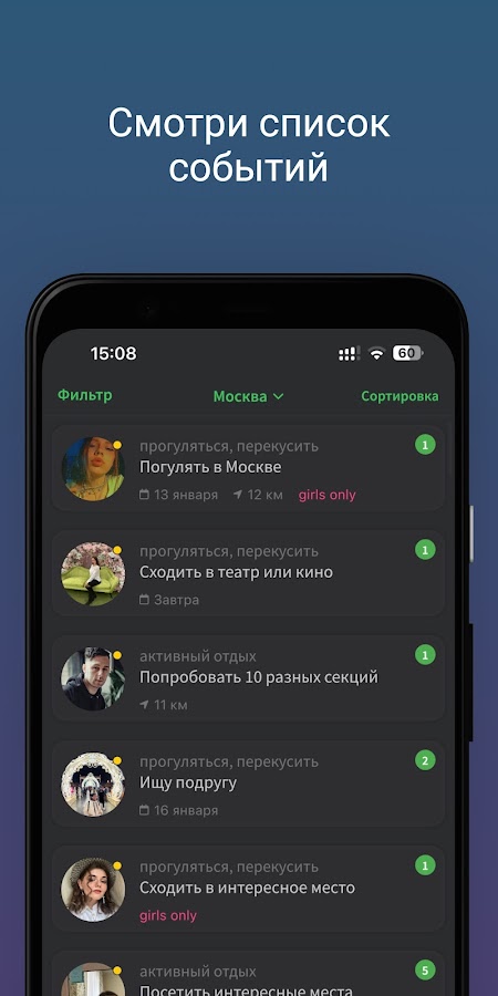 2. Просматривайте другие события и откликайтесь на них.