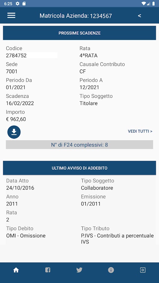 • сводную ведомость сумм, подлежащих уплате руководству, с указанием кодов, которые будут использоваться для заполнения форм F24, а также тех же форм, уже предварительно заполненных и доступных для скачивания в формате PDF;