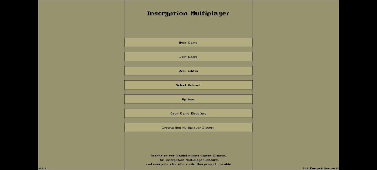 Этот проект является портом, созданным другим разработчиком, если в этой версии будут обнаружены ошибки, сообщите об этом Naidru, а не разработчикам на сервере Inscryption Multiplayer Discord