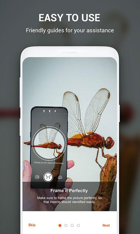 — Мгновенно идентифицировать насекомых, пауков или бабочек и многих других насекомых на фото или в камере.