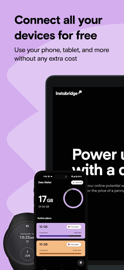 Попрощайтесь с огромной платой за роуминг данных и неудобным оборудованием. Загрузите Instabridge eSIM сегодня и начните наслаждаться свободой передачи данных по всему миру, где бы вы ни находились. Если вам нужно немного данных, чтобы продержаться в течение дня, или большой пакет данных, чтобы отправиться в длительную поездку, Instabridge eSIM поможет вам. Оставайтесь на связи, оставайтесь без проблем с Instabridge eSIM!