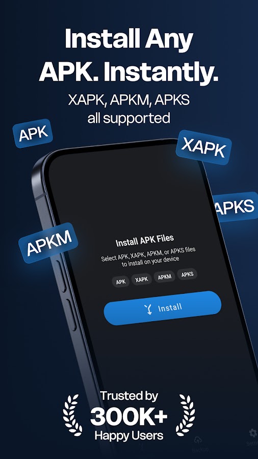 Install Buddy поддерживает все популярные форматы пакетов Android. Просто выберите файл и нажмите «Установить». Никаких сложных шагов, никаких запутанных меню. Работает с файлами APK, XAPK, APKM и APKS, загруженными из любого источника.