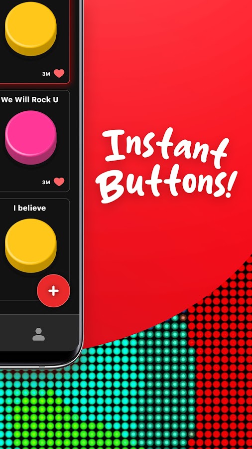 Остановите поиск и загрузите Instant Buttons звуковые эффекты, лучшее приложение для создания звука и звуковых эффектов для вашего мобильного телефона. Если вы думаете о каком-либо звуке, мгновенные кнопки включают его. Зайдите в их поисковик, введите ключевые слова и в один клик у вас будет тот звук, который вы хотели.